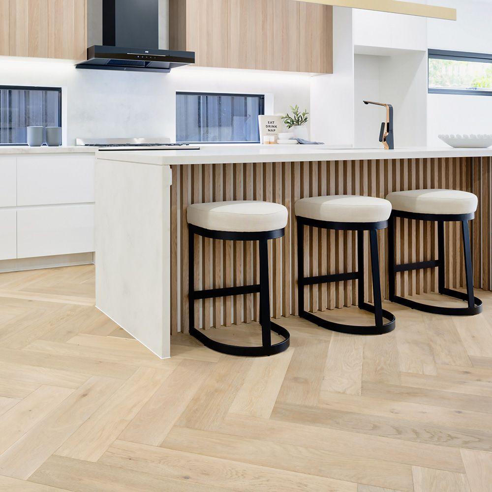 With a European Oak veneer enhanced by light wire brushing and a smooth finish, this stunning herringbone flooring will add a touch of sophistication to any space. Extensive warranties ensure this floor will last for years to come.